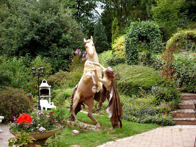 Окруженная зеленью статуя под названием «Гелиос» вполне на своем месте.